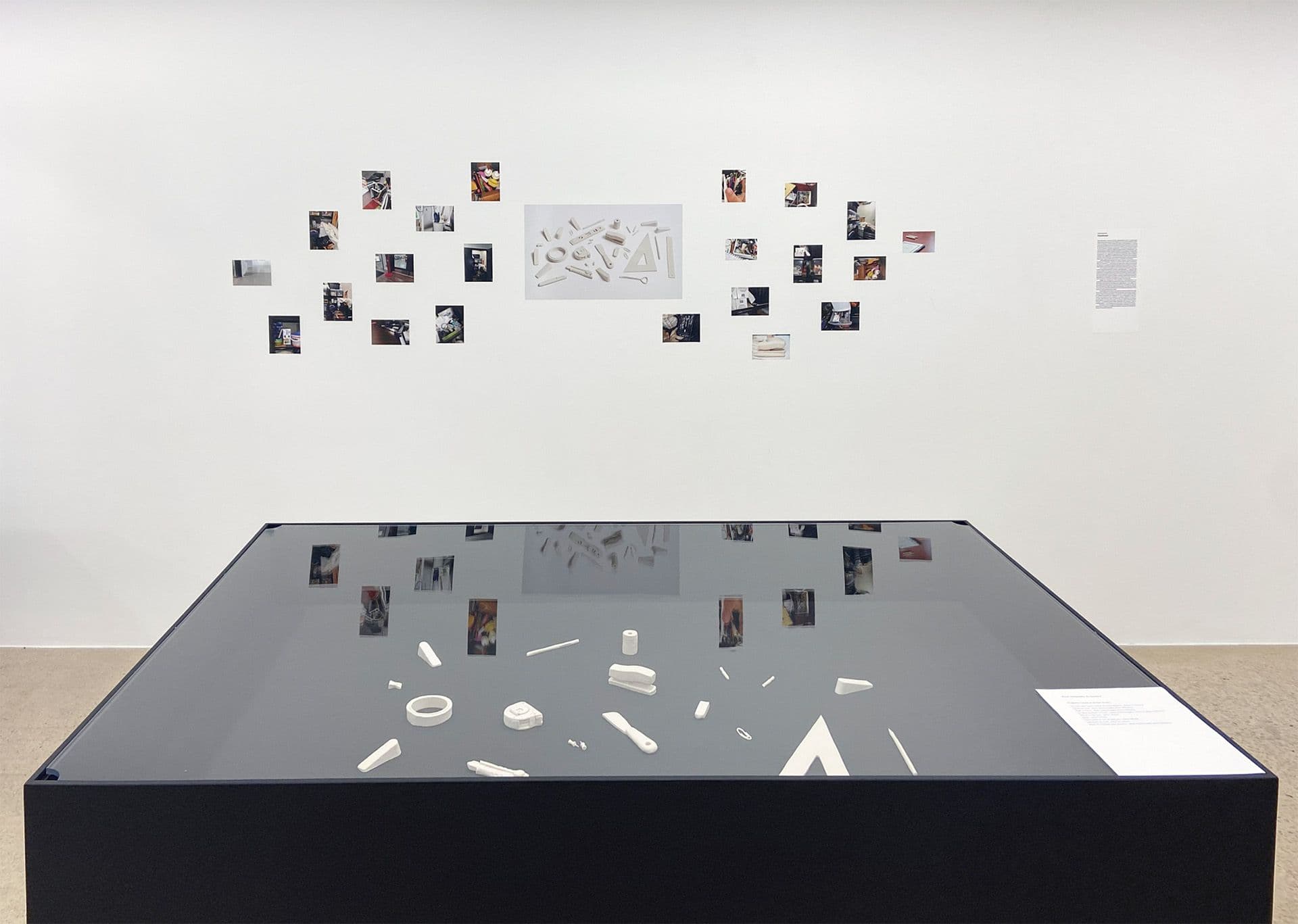 De mars 2023 à mai 2025, la Galerie UQO s’est prêtée à une audacieuse expérience : elle a invité Patrice Loubier à la prendre elle-même pour objet et contexte de son « intervention commissariale ». Plutôt que de concevoir une exposition que présenterait ensuite la Galerie, il s’agissait d’élaborer un projet qui travaillerait la Galerie du dedans, en faisant de ses composantes et du travail quotidien de son équipe autant d’occasions directes de création pour des artistes invité·es. Tout au long des deux dernières années, équipement technique, réunions de travail, communications ou habitudes de l’équipe sont donc devenus le sujet et la matière des travaux réalisés par le commissaire et les artistes qu’il a convié·es : Guillaume Clermont, Chloé Desjardins, Laurent Marissal et Anouk Verviers. Dans son projet Fantômes, Chloé Desjardins crée des répliques d’outils et d’articles de bureau d’usage courants dans les institutions artistiques, qui sont ensuite infiltrées dans les espaces de travail de la Galerie pour être découvertes au hasard de leurs tâches par son personnel. Ces Fantômes d’objets sont parfois longtemps passés inaperçus aux yeux de personnes au regard pourtant aiguisé par leur travail et leur fréquentation assidue des arts visuel. Le ludisme de Fantômes se double ainsi d’une portée critique : révéler l’automatisme « aveugle » des gestes familiers qui mène à confondre une sculpture avec un objet réel.