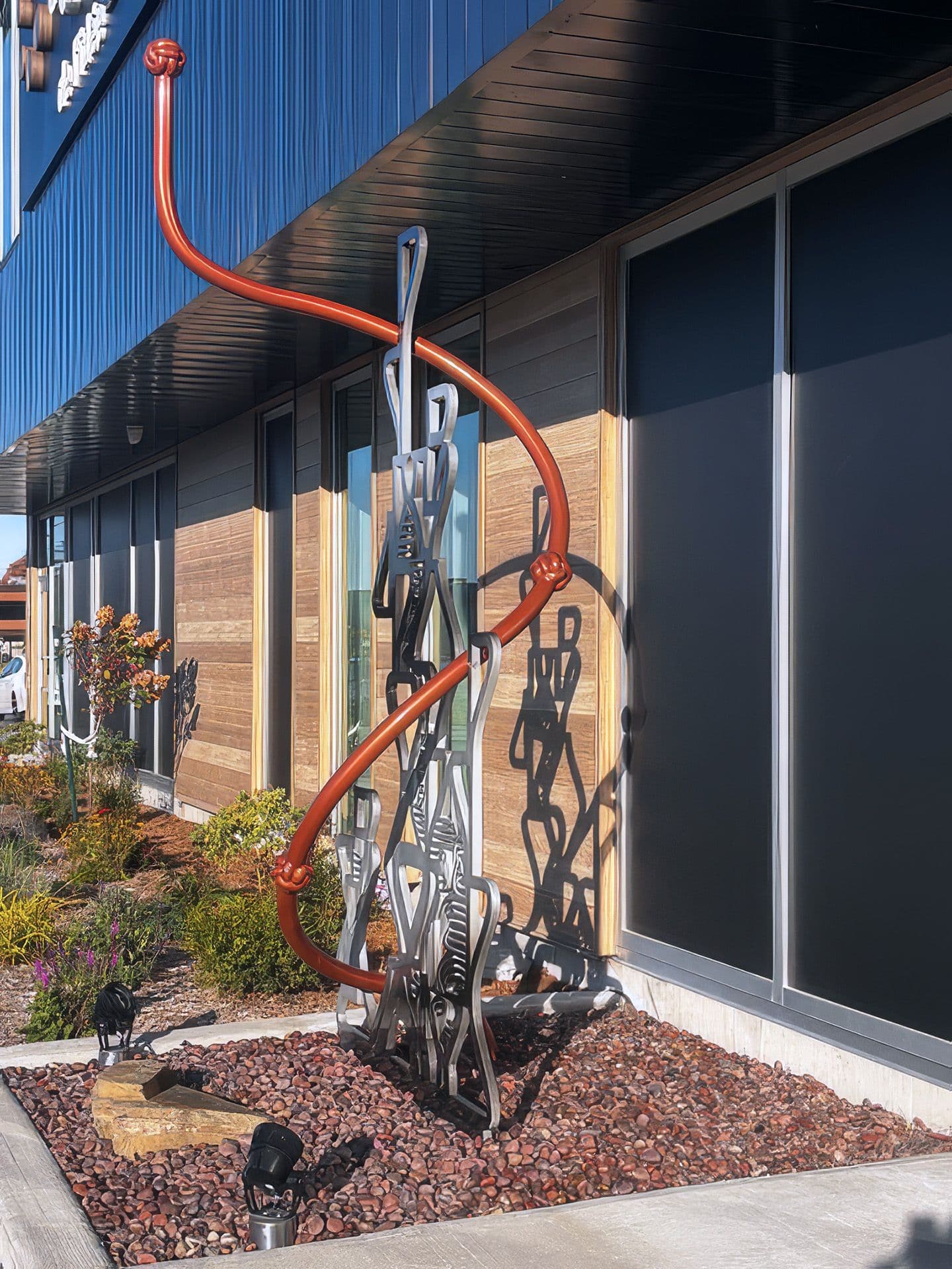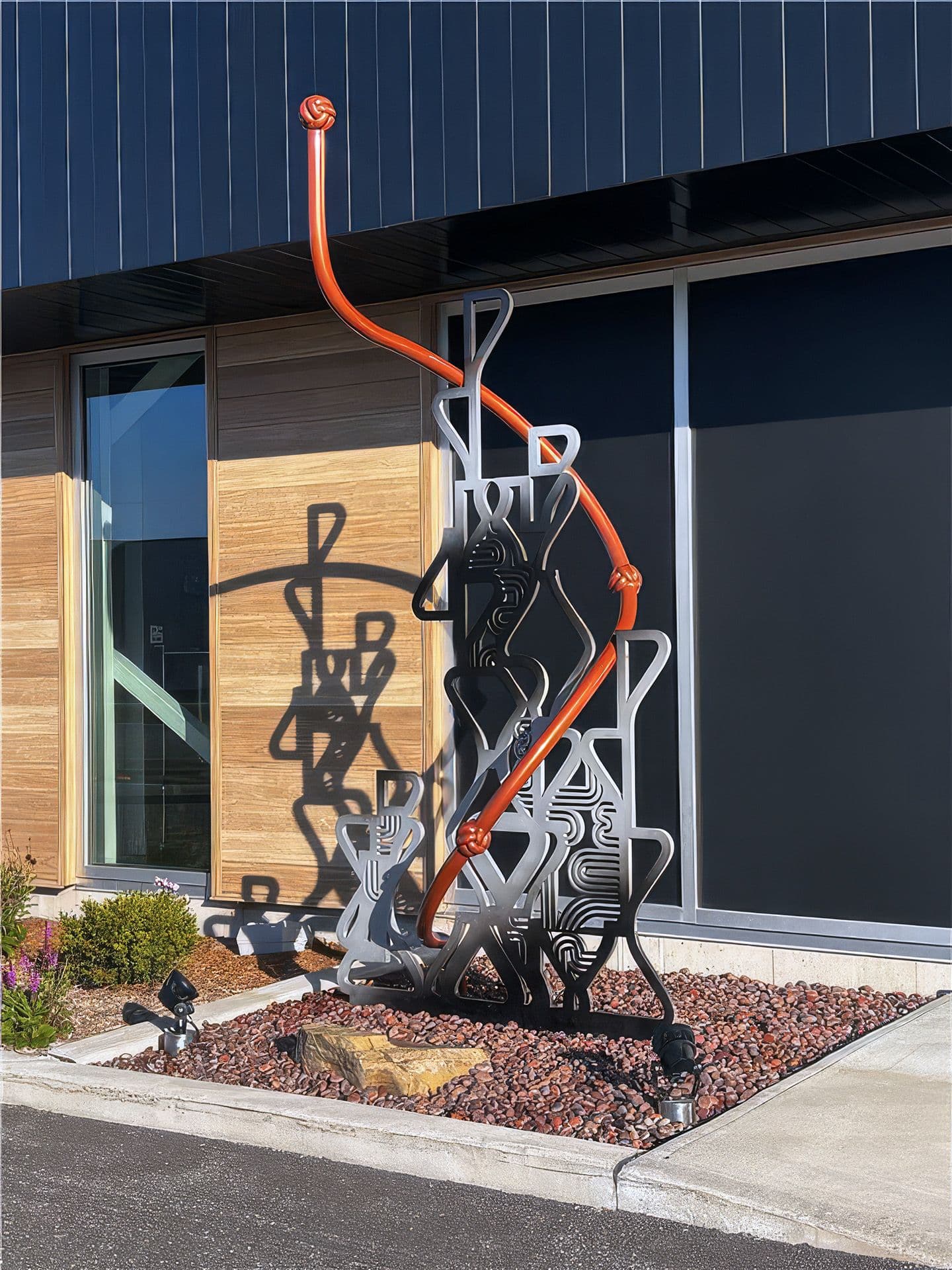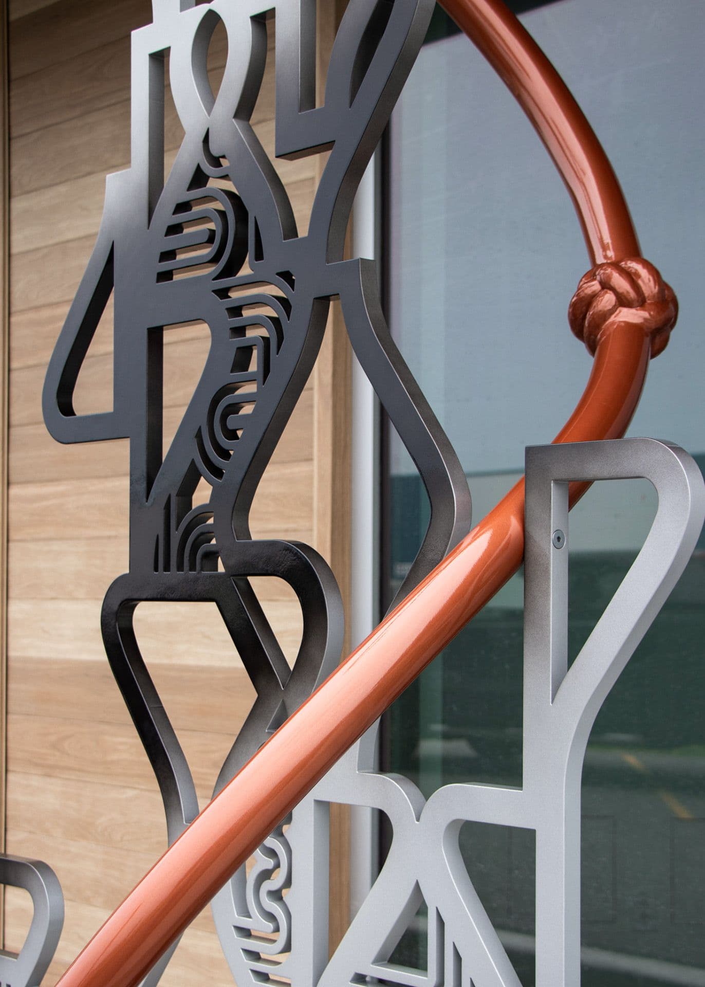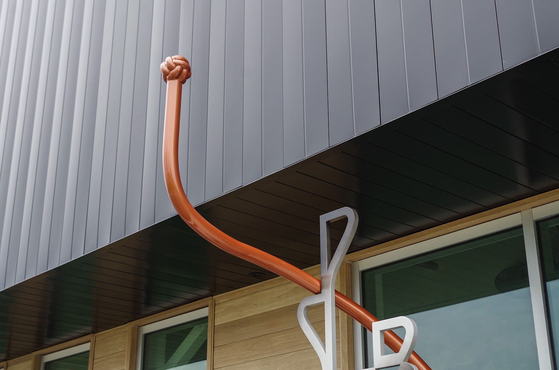 Matériaux : aluminium québécois et peinture imitant l’acier inoxydable et le cuivre Collaboration : Atelier du Bronze Lieu d’implantation : Station Agro-Biotech, Saint-Hyacinthe, Québec